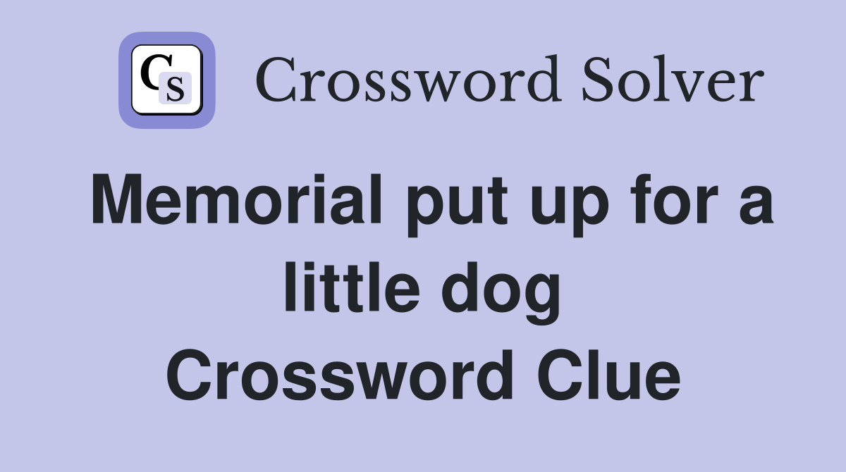 Memorial put up for a little dog Crossword Clue Answers Crossword