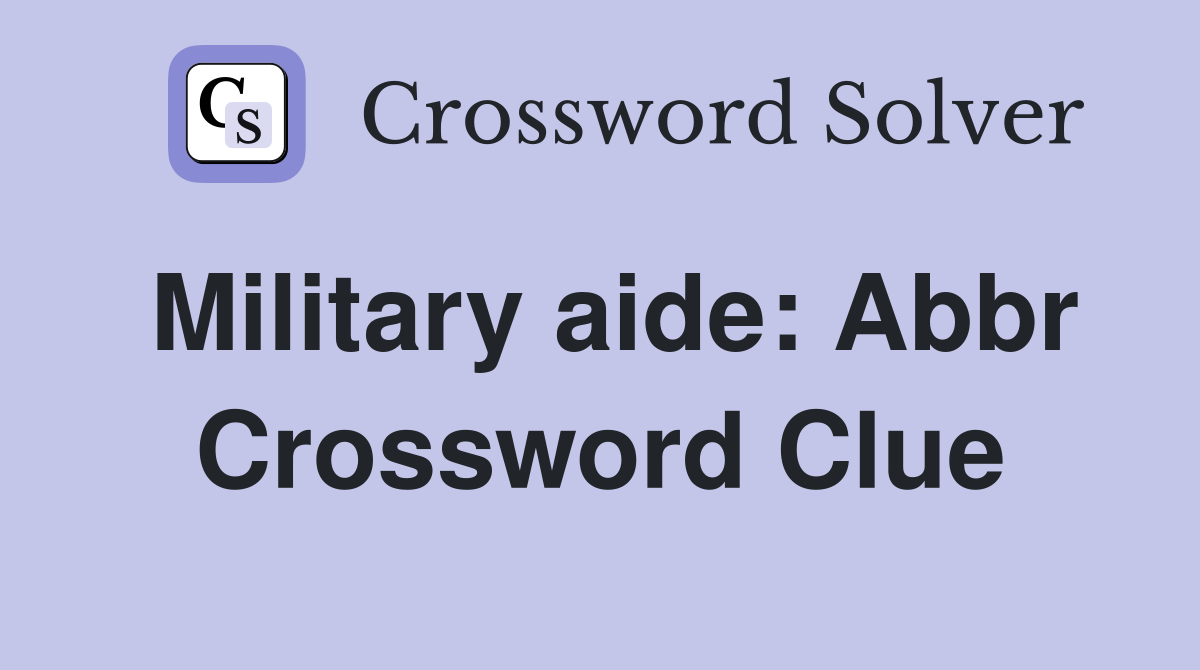 Military aide: Abbr Crossword Clue Answers Crossword Solver