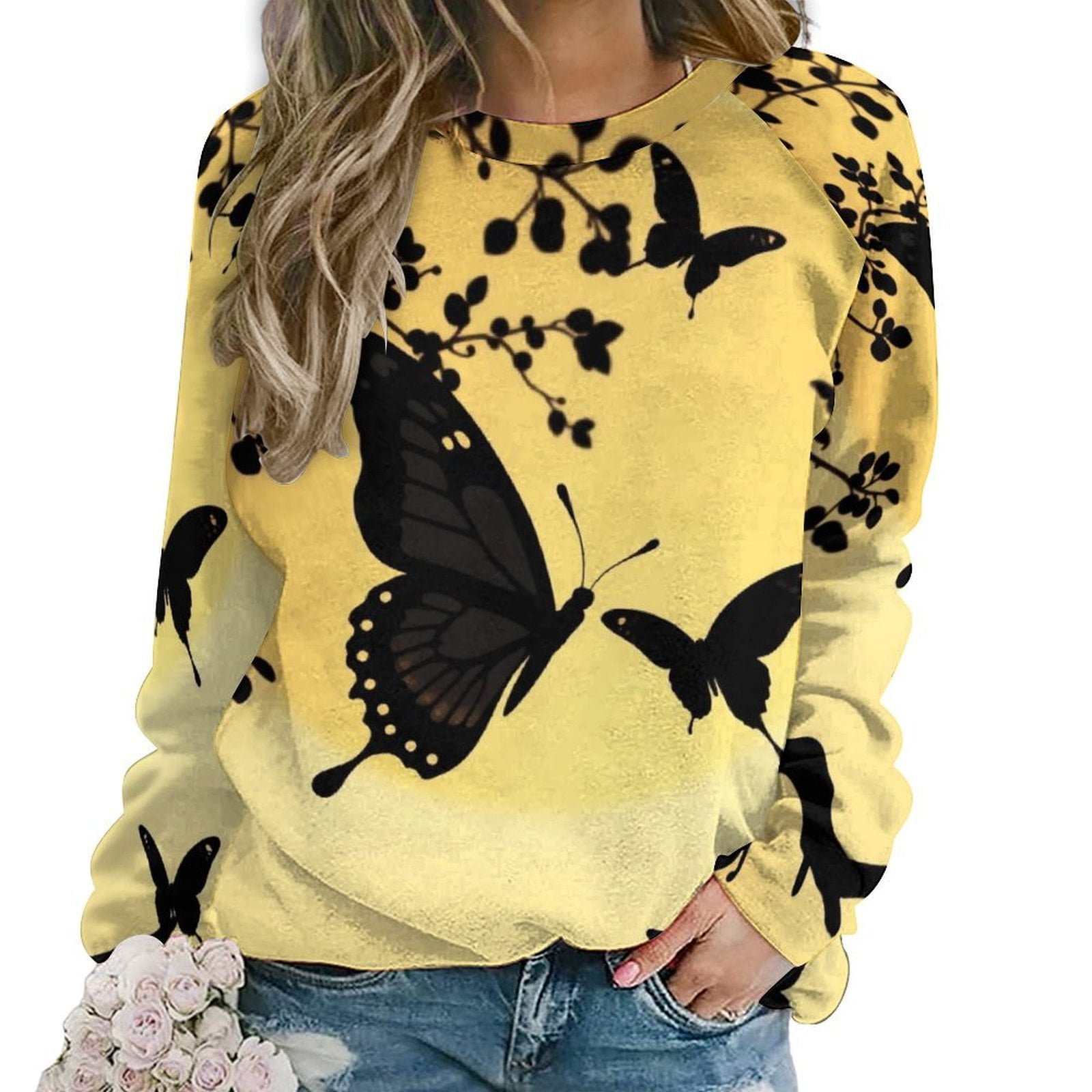 Butterfly Silhouette Series Design Sweatshirts Women T shirt Long