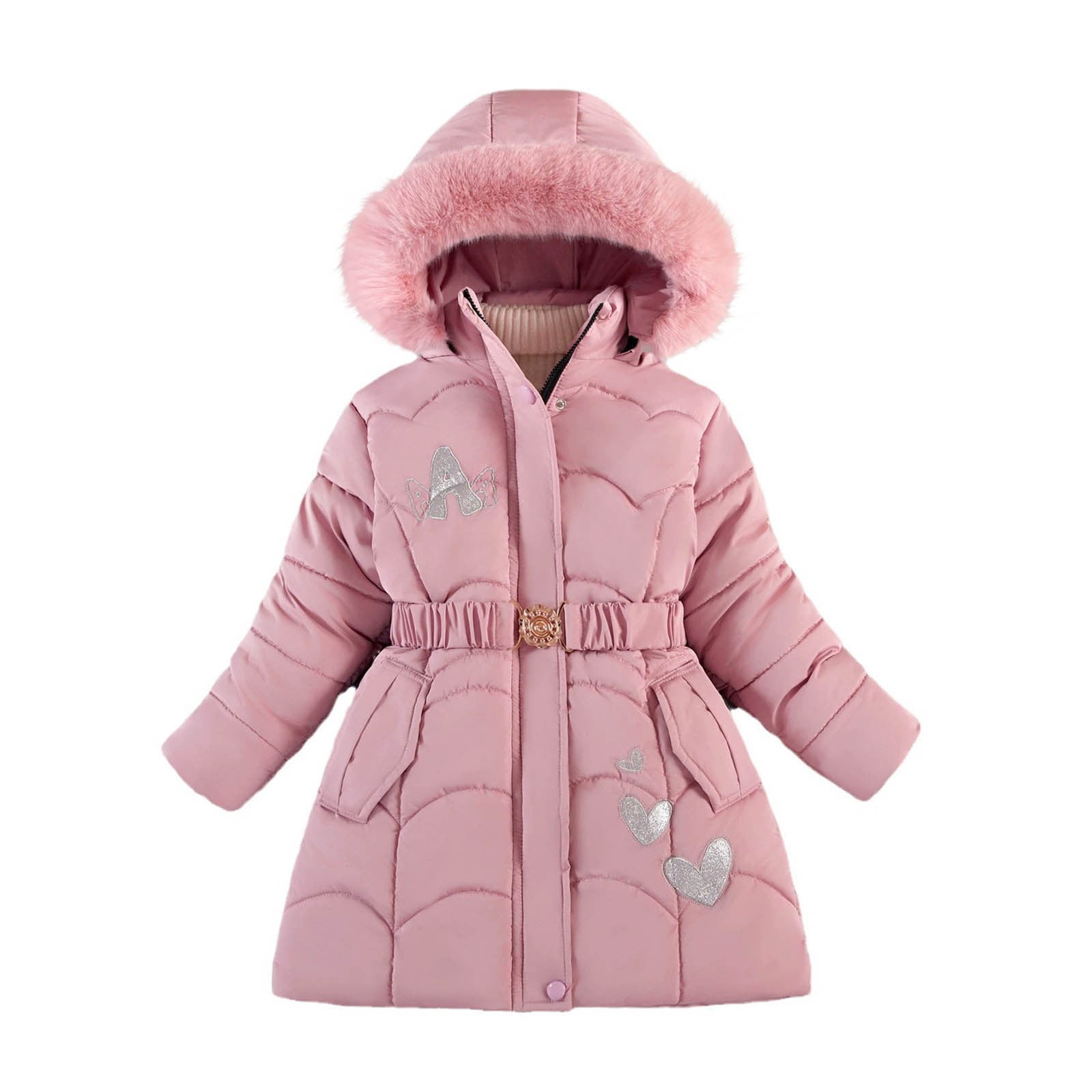 CLOISE Puffer Jacket Kids Girl with Hood Long Cotton Pockets Snow