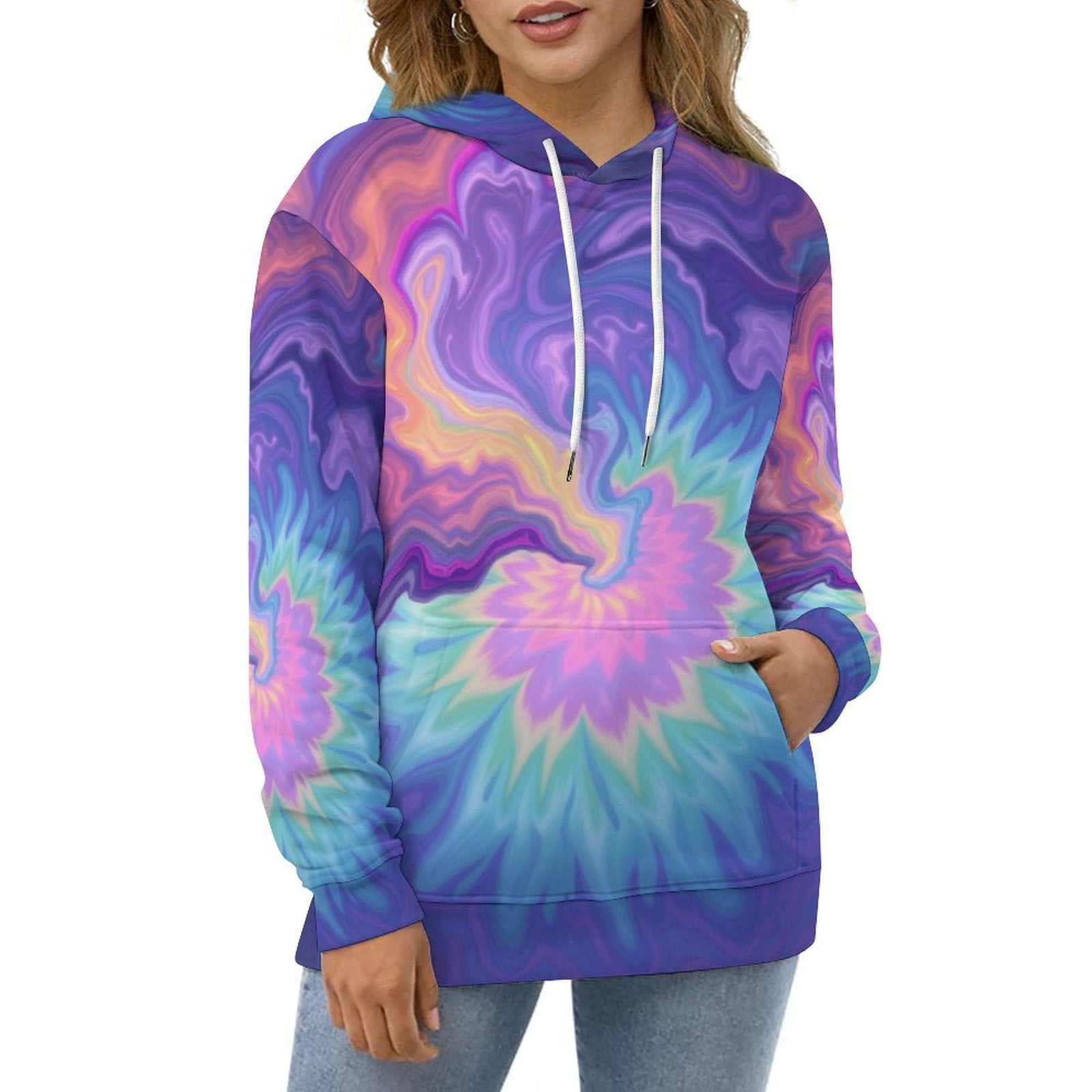 Casual Hoodies Abstract Pastel Swirl Lady Long Sleeve Classic Design