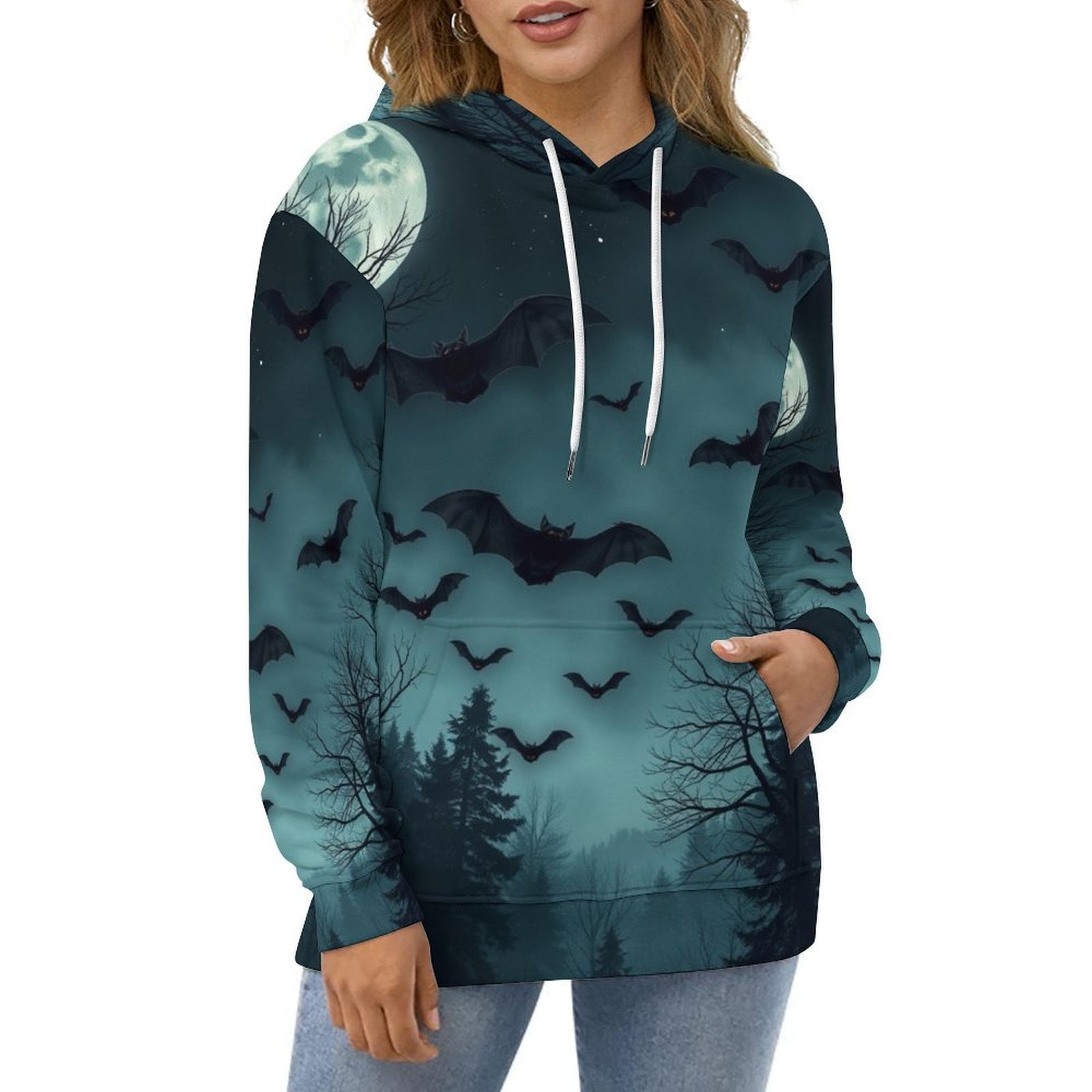 Casual Hoodies Night Bats Forest Lady Long Sleeve Classic Design Loose
