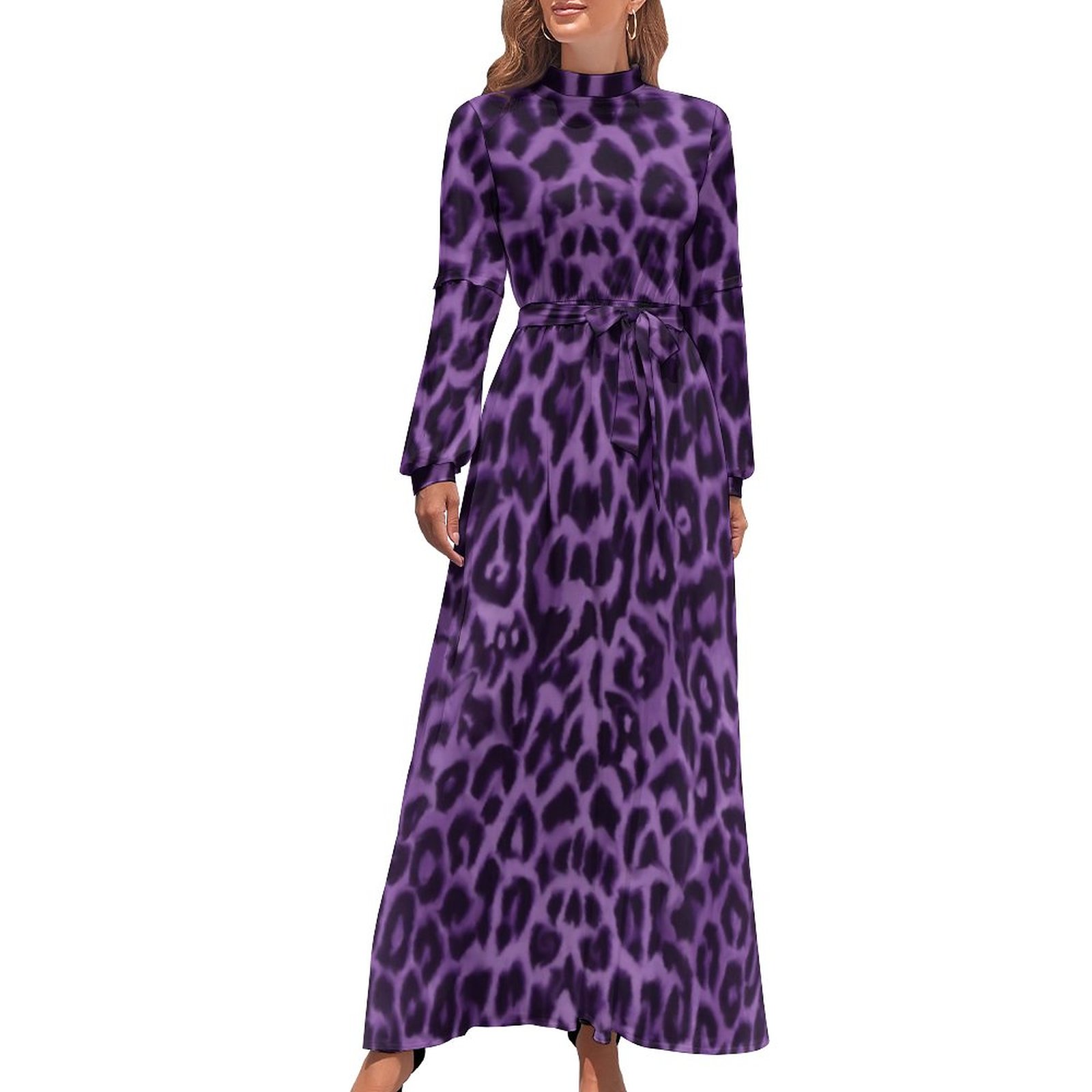 Classic Leopard Dress Long Sleeve Animal Spots Print Kawaii Maxi Dress