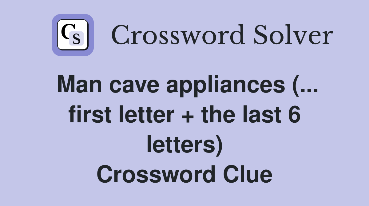 Man cave appliances ( first letter the last 6 letters) Crossword