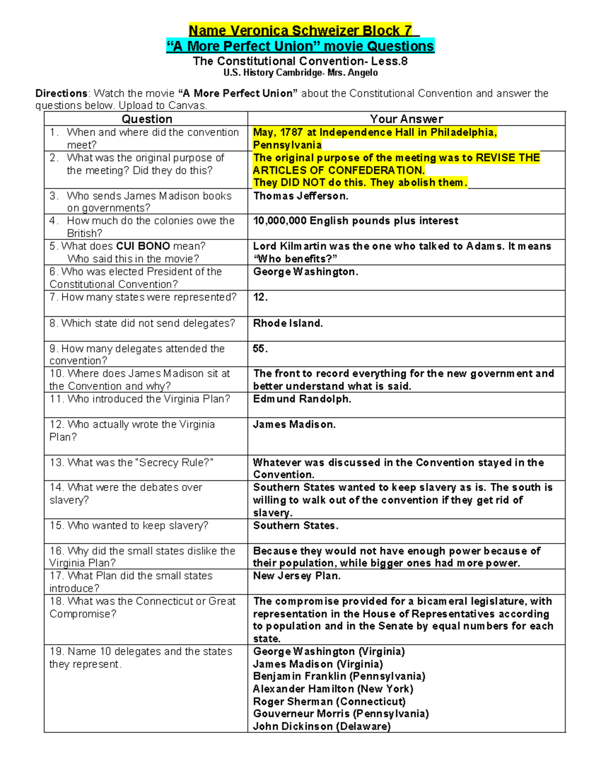 A More Perfect Union: Constitutional Convention Insights Name Abigail