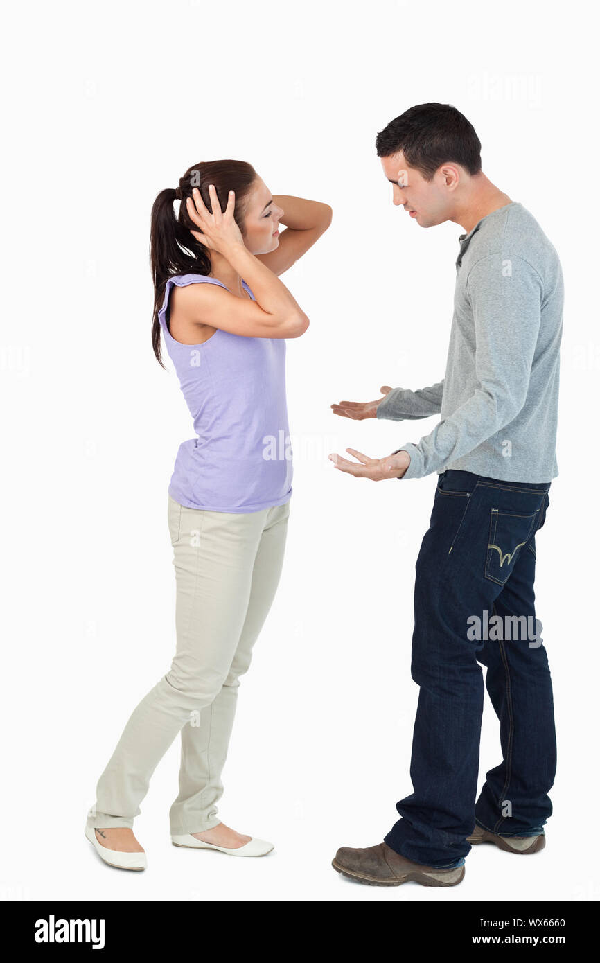 Premium Photo Discordance of opinions Smiling guy votes for girl
