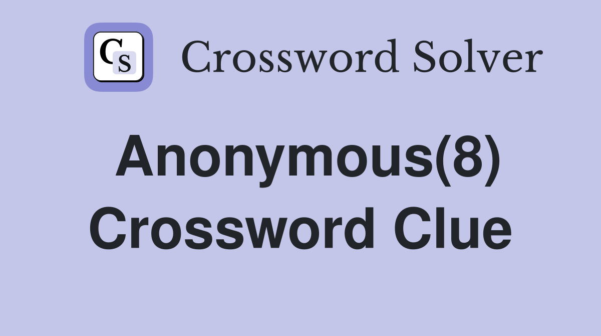 Anonymous(8) Crossword Clue Answers Crossword Solver