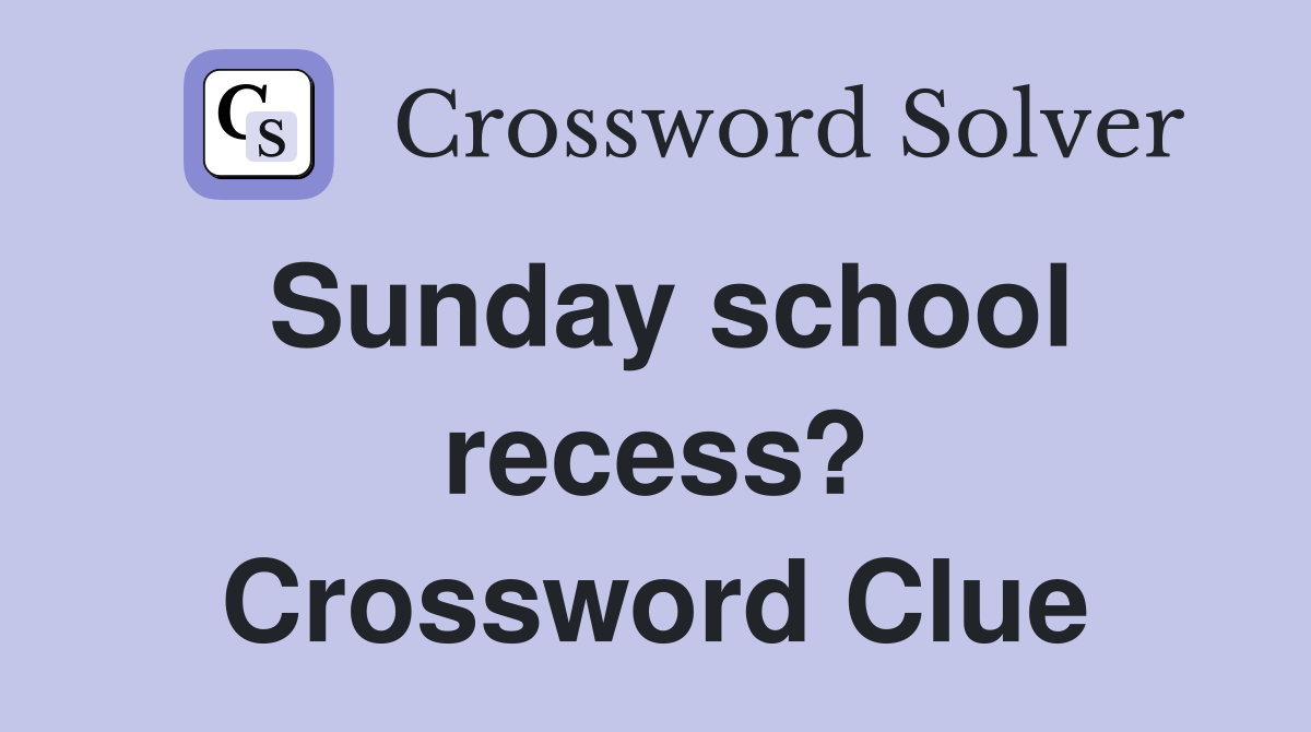 Sunday school recess? Crossword Clue Answers Crossword Solver