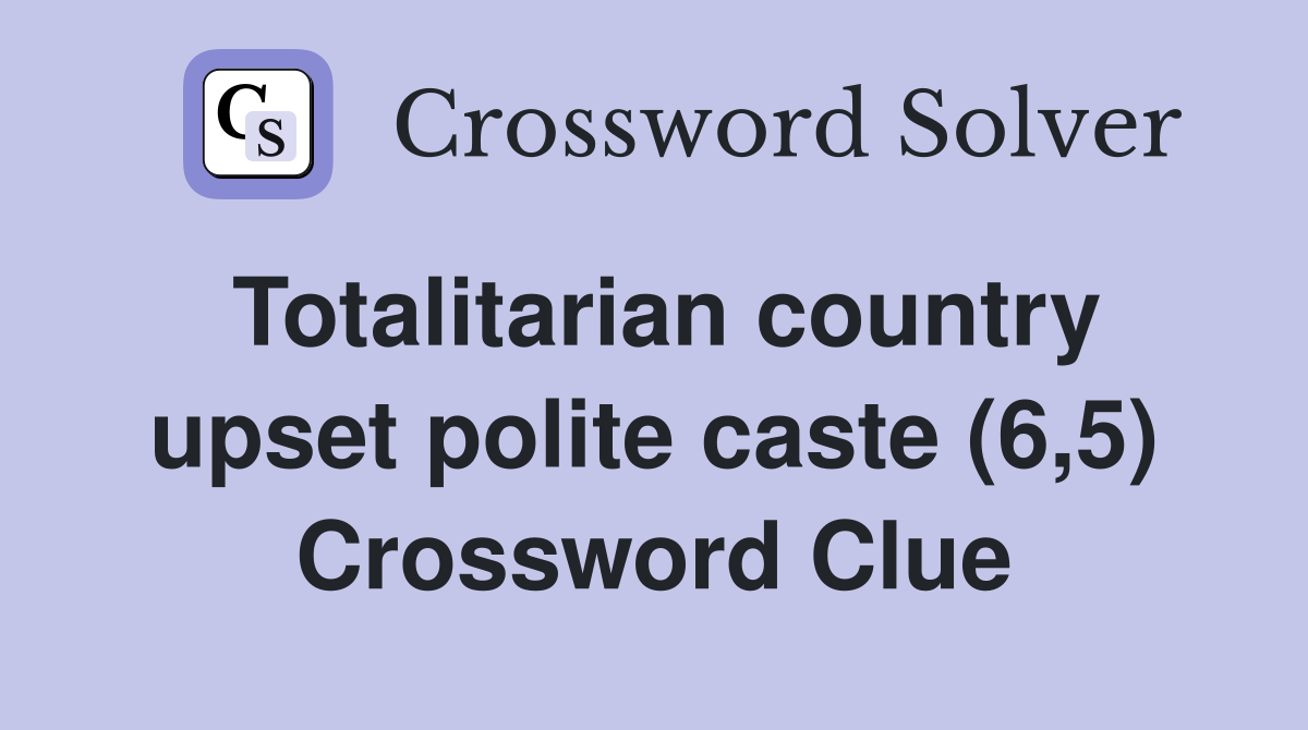 Totalitarian country upset polite caste (6 5) Crossword Clue Answers
