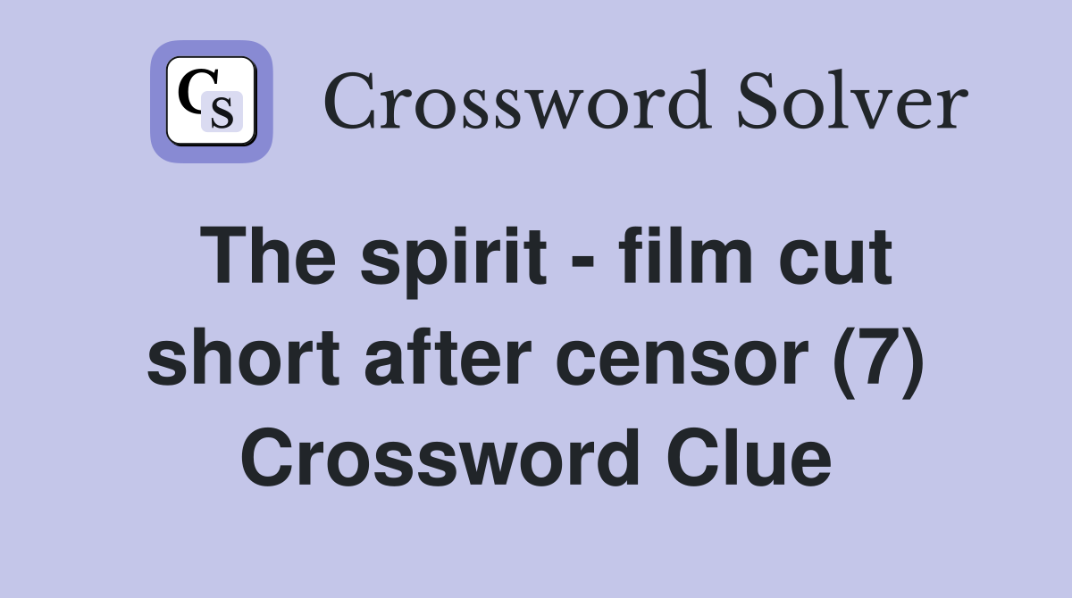 The spirit film cut short after censor (7) Crossword Clue Answers