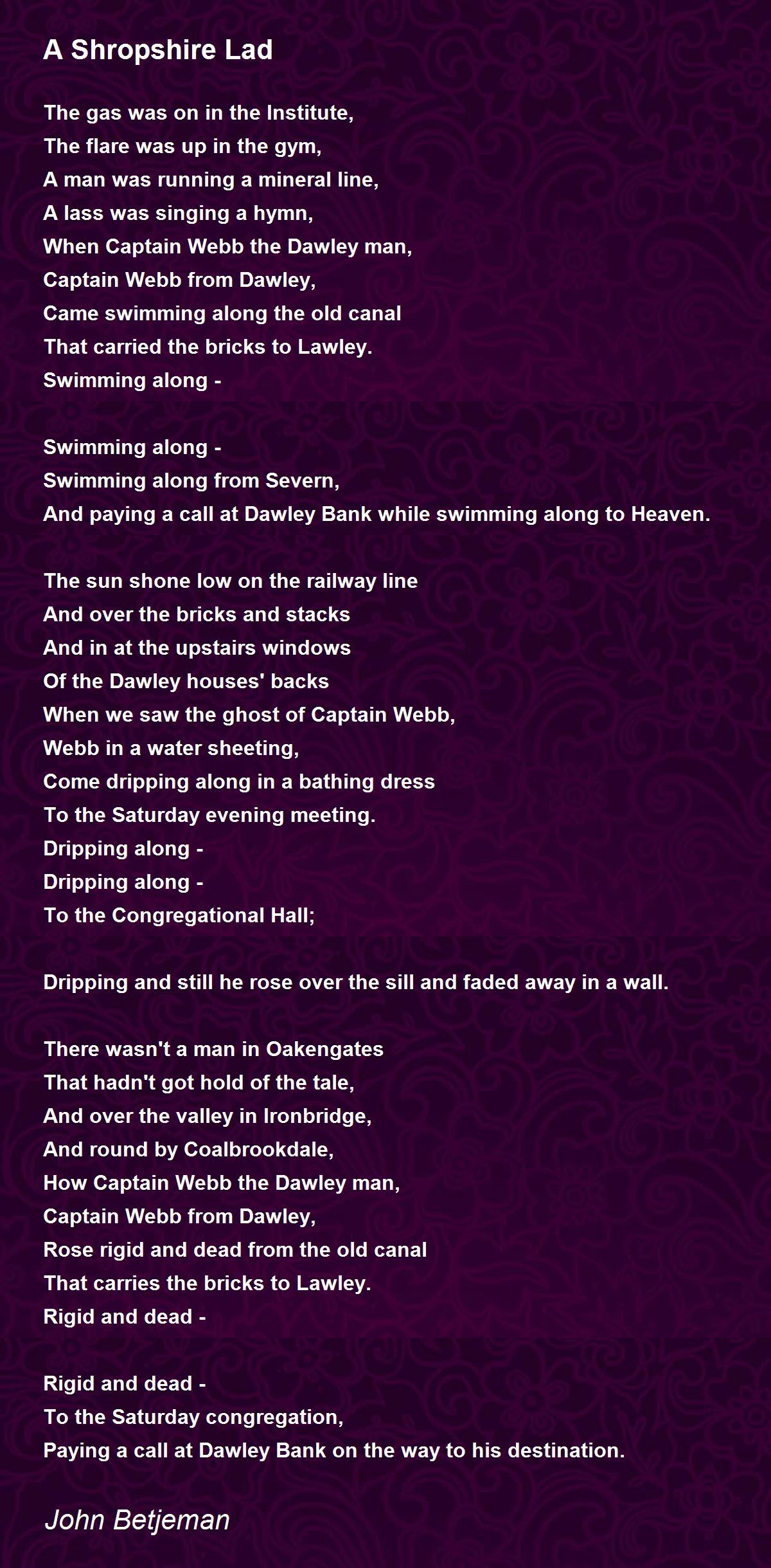 A Shropshire Lad is a cycle of sixty three poems by the English poet