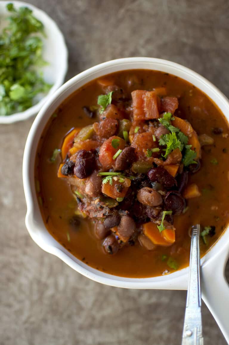 Vegetarian 3 Bean Stew with Roasted Potatoes Recipe cookshideout