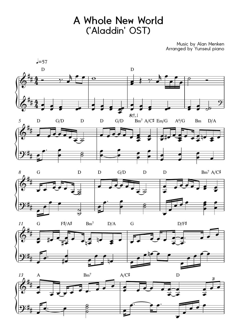 알라딘(Aladdin) OST A Whole New World 악보 by Yunseulpiano