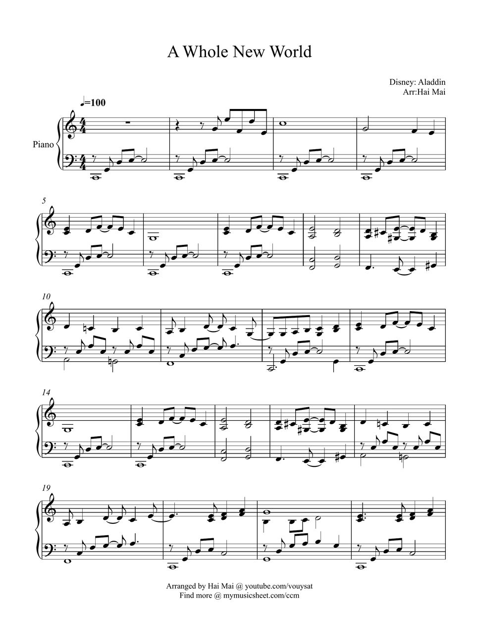 Disney Aladdin A Whole New World(C Major) (Easy Piano) نوتة by Hai Mai