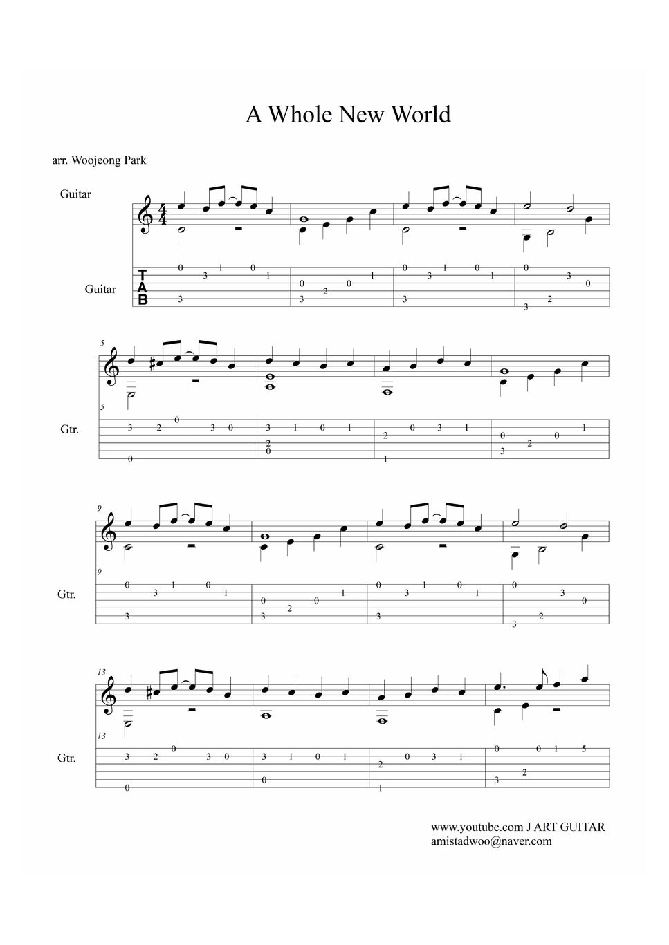 Aladdin OST 알라딘 a whole new world (guitar tab 기타 타브 악보) 曲谱 单线谱 by