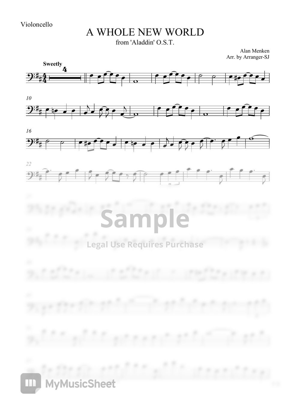악보 gt 알라딘 OST A Whole New World (첼로와 피아노 듀엣) by Arranger SJ