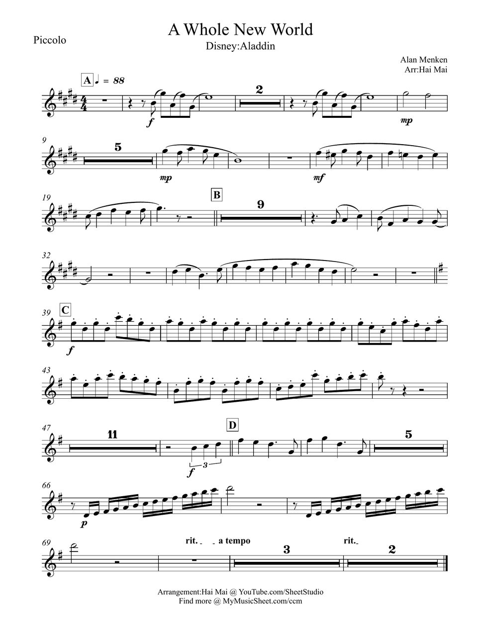 A Whole New World FLUTE DUET A Whole New World FLUTE DUET by Fred