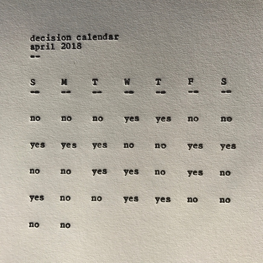 Jack Murphy Decision Calendar 2018 Printed Matter