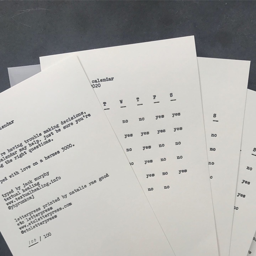 Jack Murphy Decision Calendar 2020 Printed Matter