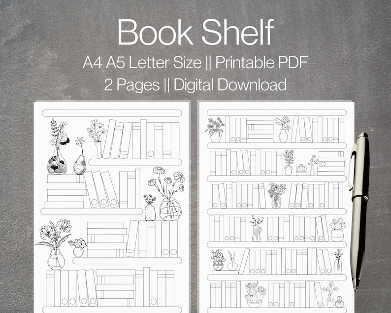 Bookshelf Printable Template Book Tracker Reading Challenge 50 100