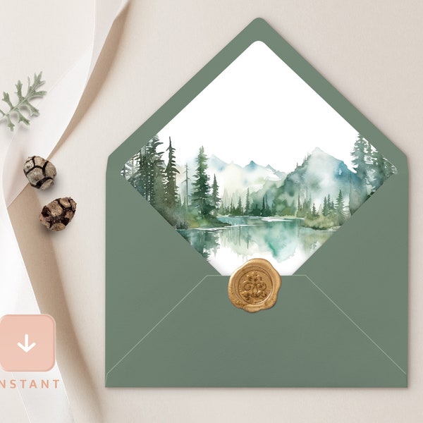 Envelope Liner Template Watercolor Greenery and Succulent Wedding