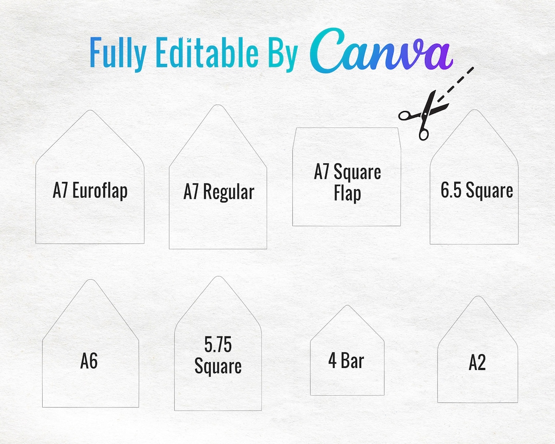 Envelope Template Canva Editable Liner 8 Sizes A7 A7 Euroflap a7 Square