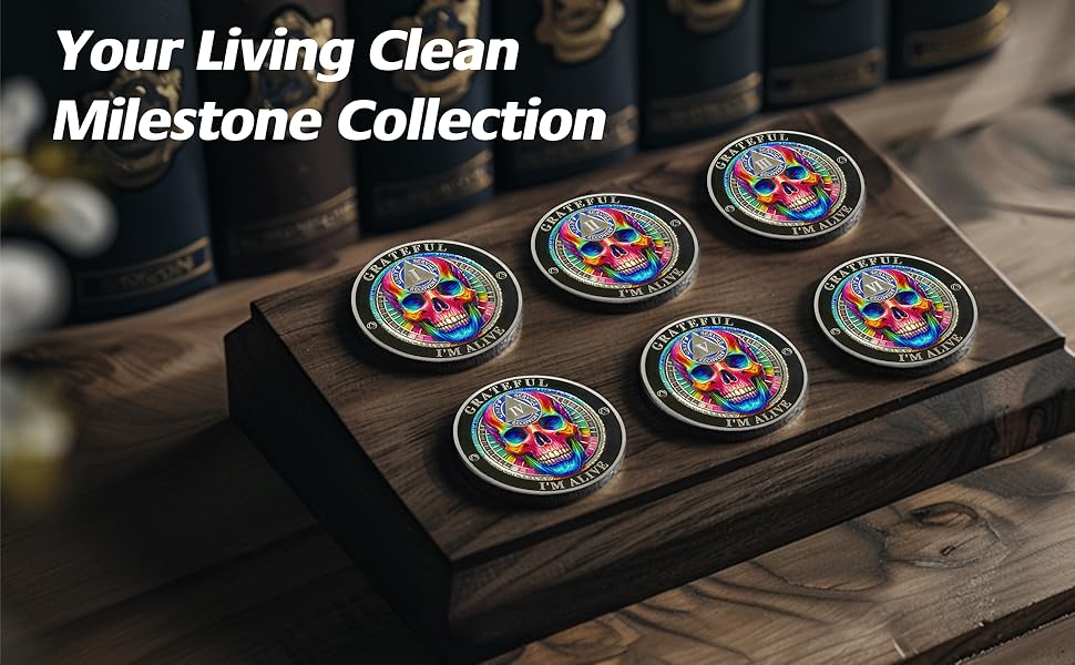 Amazon com : Rainbow Skull 12 Year Sobriety Coin Grateful I #39 m Alive
