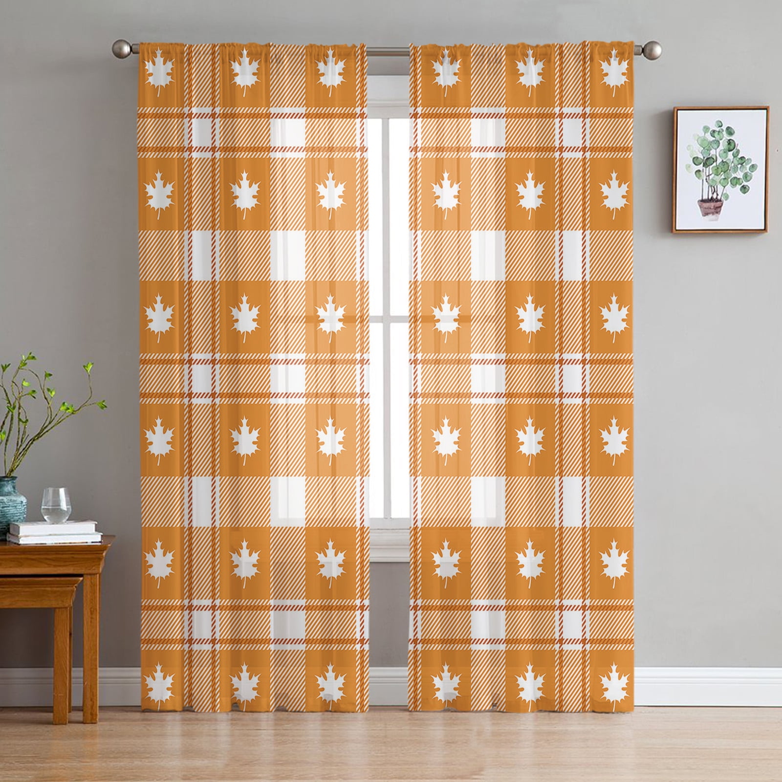 Autumn Maple Leaf Orange Lattice Tulle Curtains for Living Room Sheer