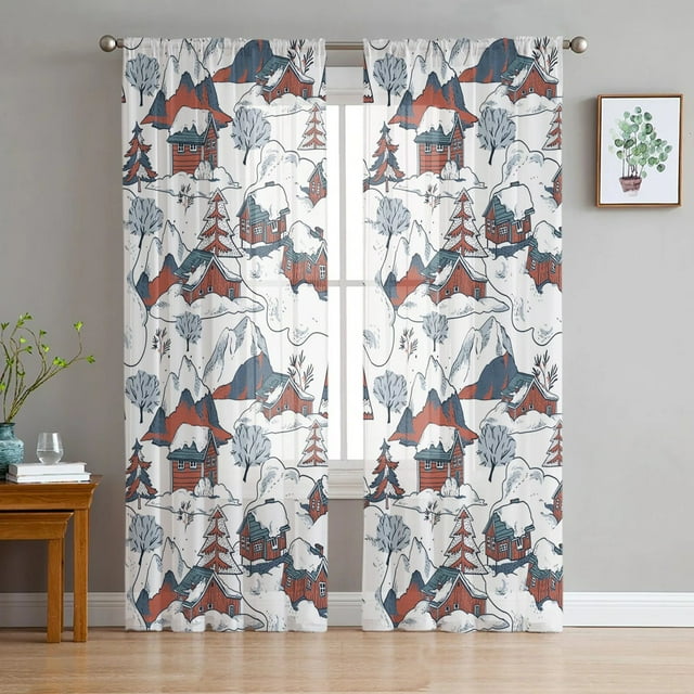 Chalet Trees Snow Sheer Curtains for Living Room Bedroom Kitchen Tulle
