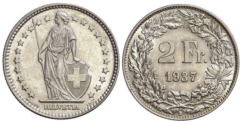 b 2 Franken 1937 (aa) (Usato) a Chiasso per CHF 49 con consegna