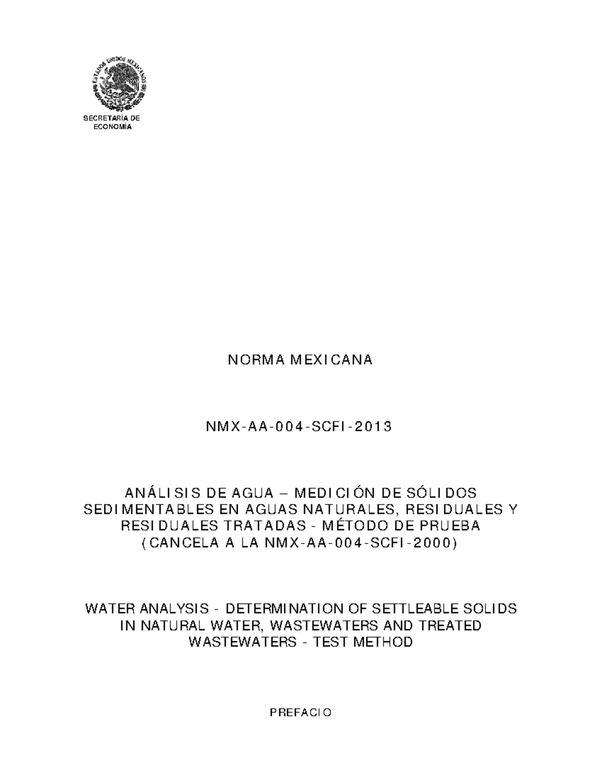 NMX AA 004 SCFI 2013 Análisis de Sólidos Sedimentables en Aguas Studocu