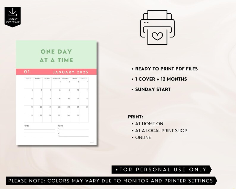 2025 Sobriety Calendar Motivational AA Quotes Printable Monthly