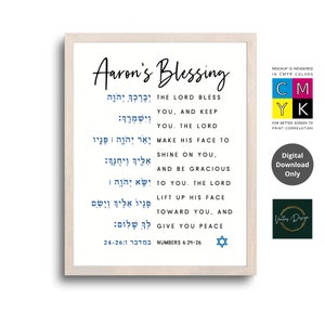 Aaronic Blessing Printable Wall Art Hebrew and English the Priestly