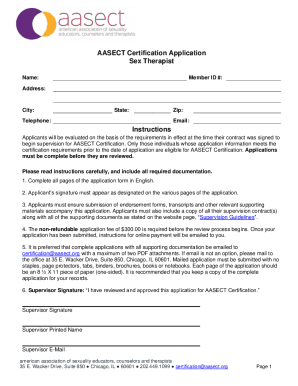 Fillable Online aasect APPLICATION FOR AASECT CERTIFICATION SEXUALITY