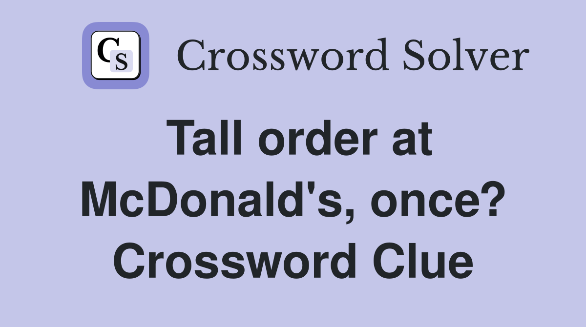 Tall order at McDonald #39 s once? Crossword Clue Answers Crossword Solver