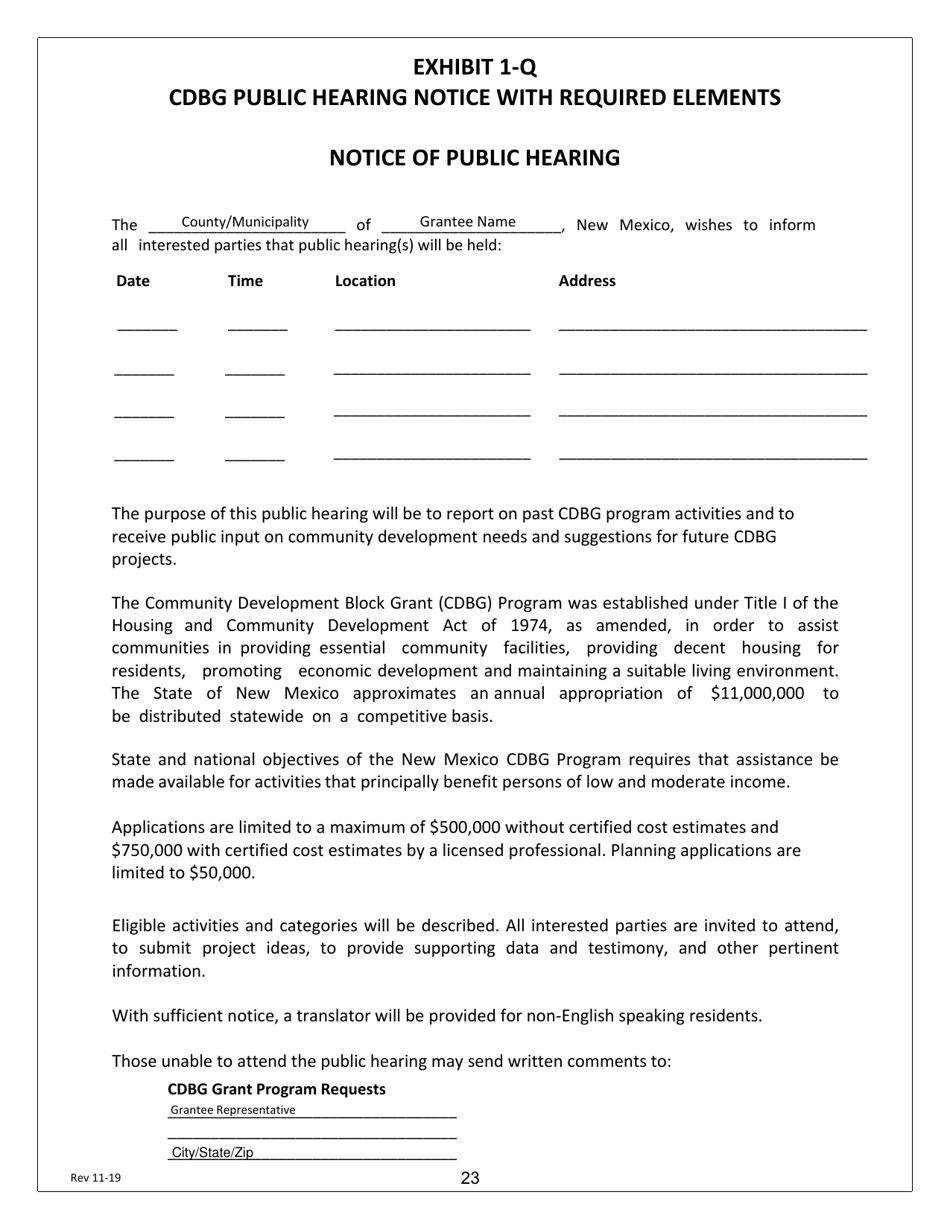 New Mexico Notice of Public Hearing (English/Spanish) Fill Out Sign