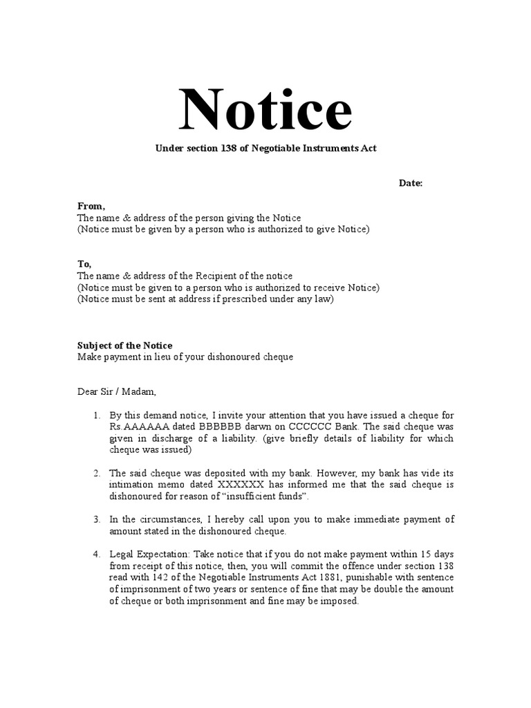 138 Notice PDF Cheque Fine (Penalty)