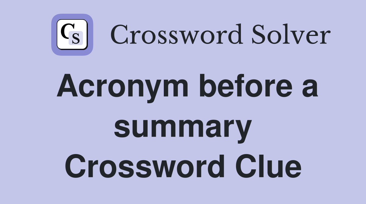 Acronym before a summary Crossword Clue Answers Crossword Solver