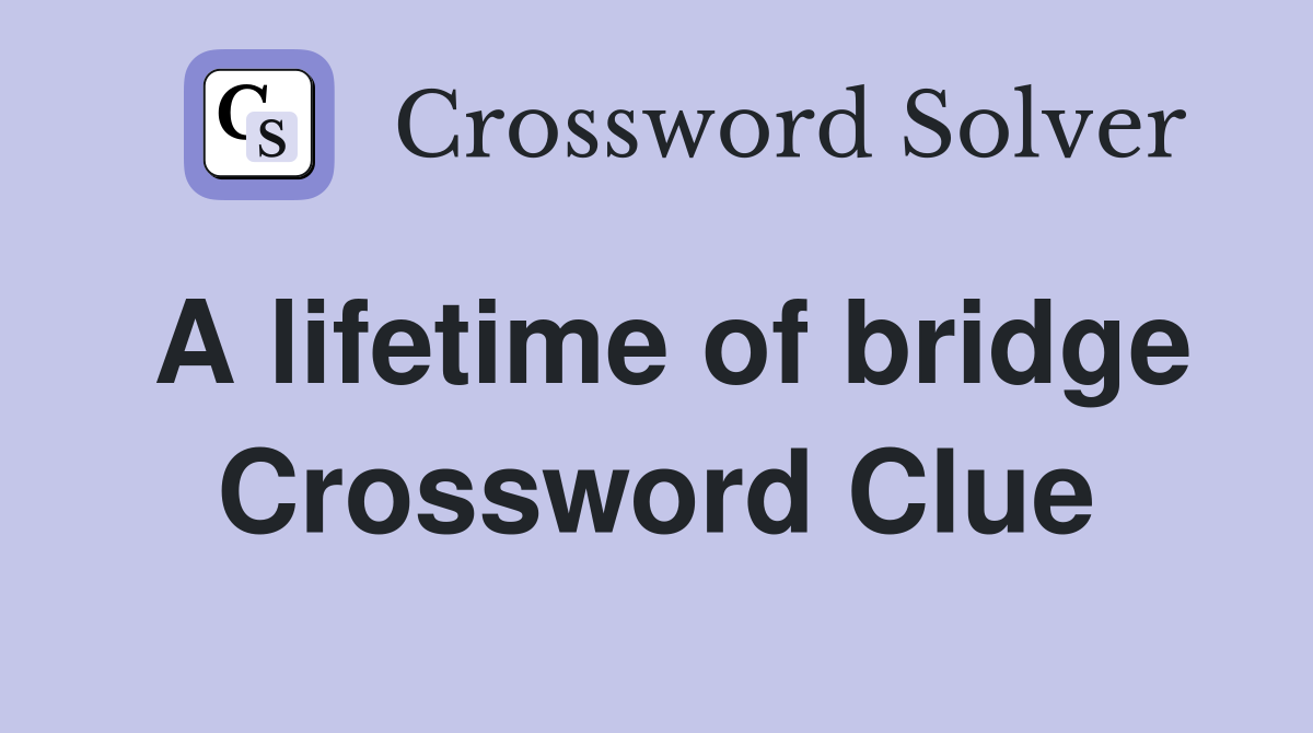 A lifetime of bridge Crossword Clue Answers Crossword Solver