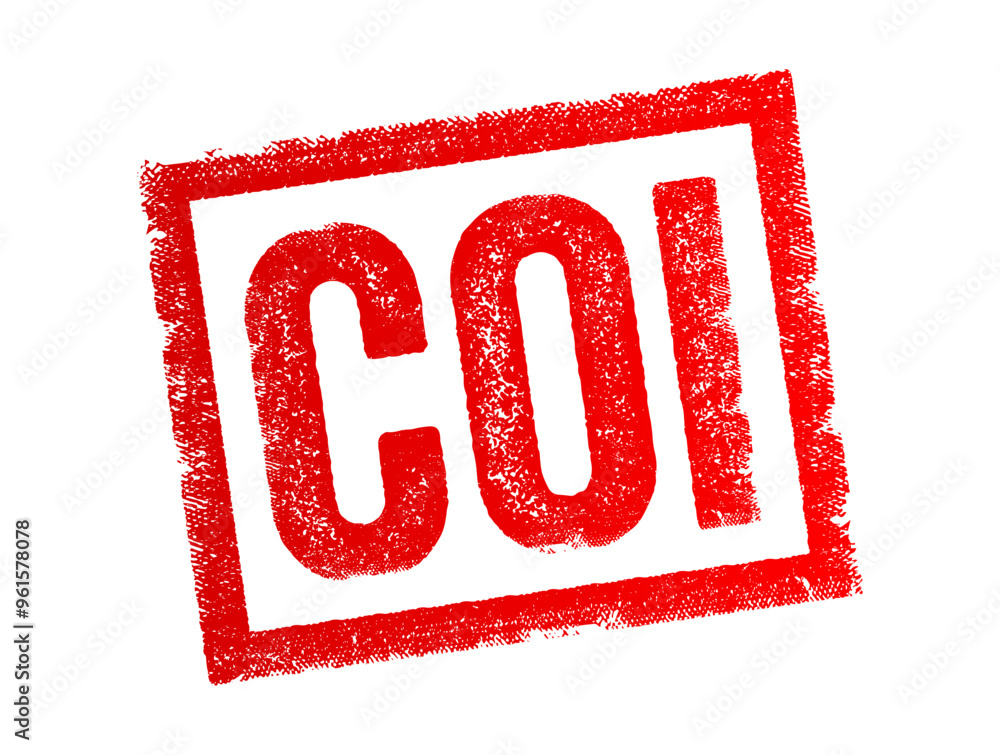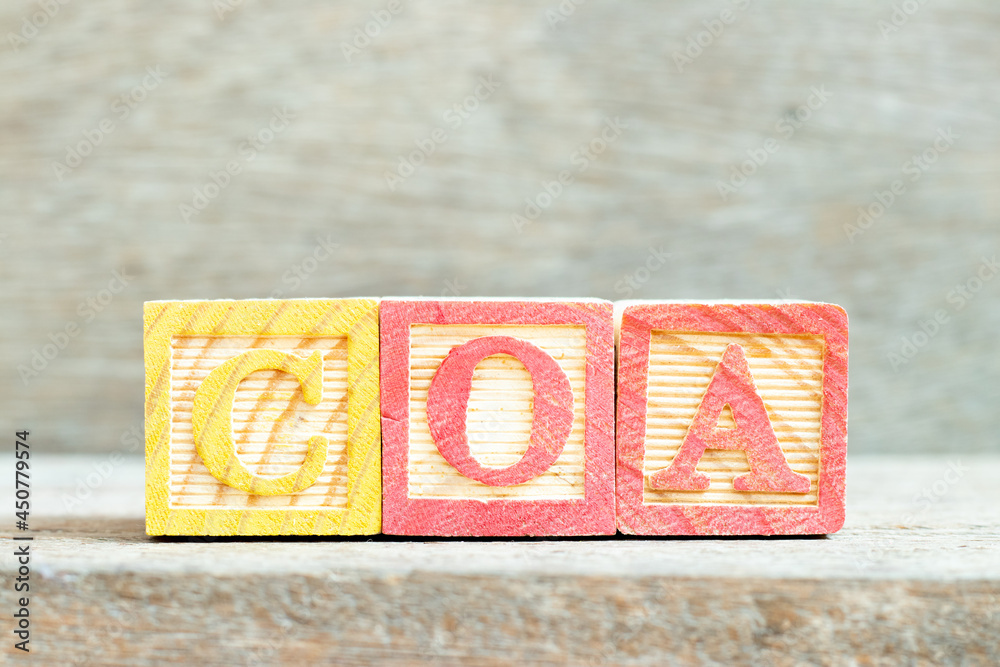 Color alphabet letter block in word COA (abbreviation of certificate of