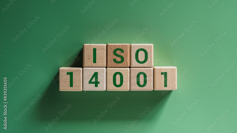 ISO 14001 quality control certification concept wooden cubes with the