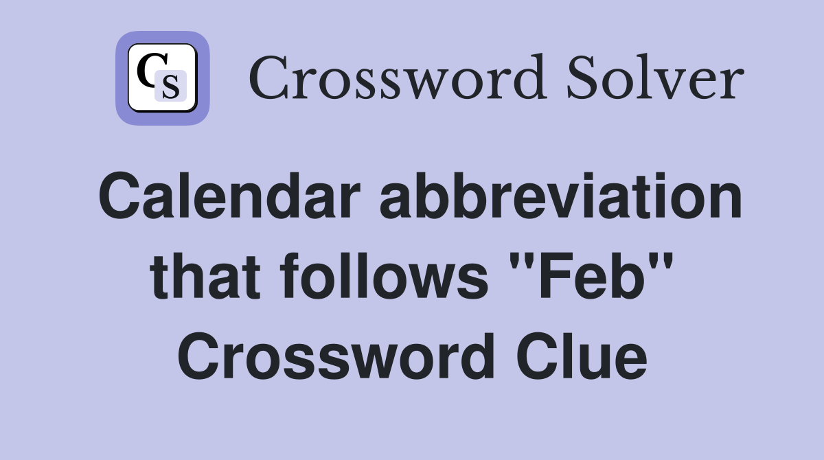 Calendar abbreviation that follows quot Feb quot Crossword Clue Answers