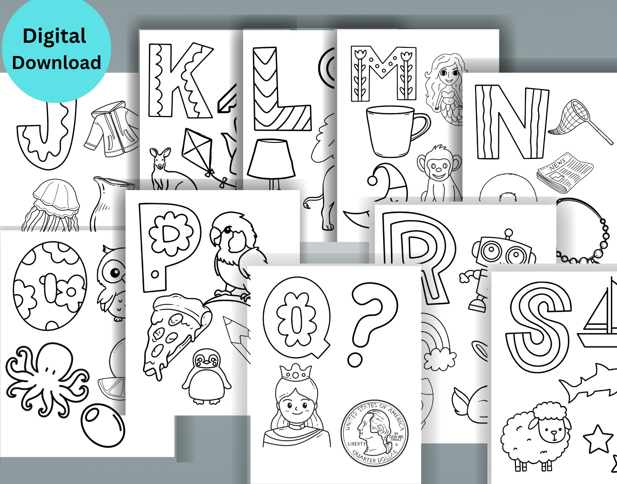 ABC Printable Coloring Pages for Kids Digital Download Alphabet Book