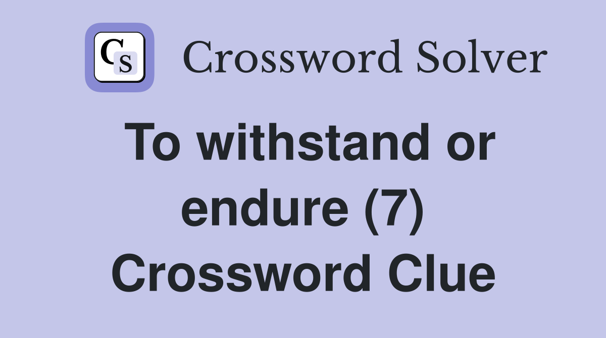 To withstand or endure (7) Crossword Clue Answers Crossword Solver