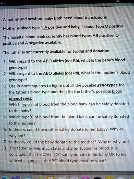 SOLVED: A mother vand newbom baby both need blood transfusions: Mother