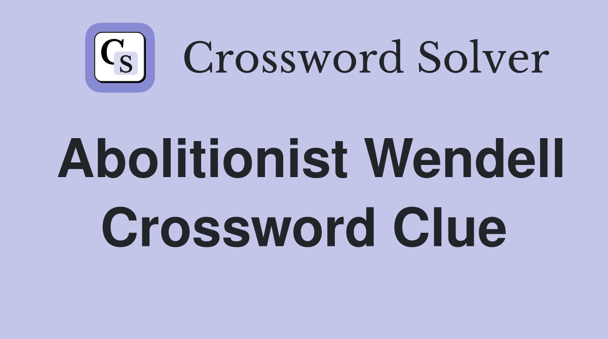 Abolitionist Wendell Crossword Clue Answers Crossword Solver