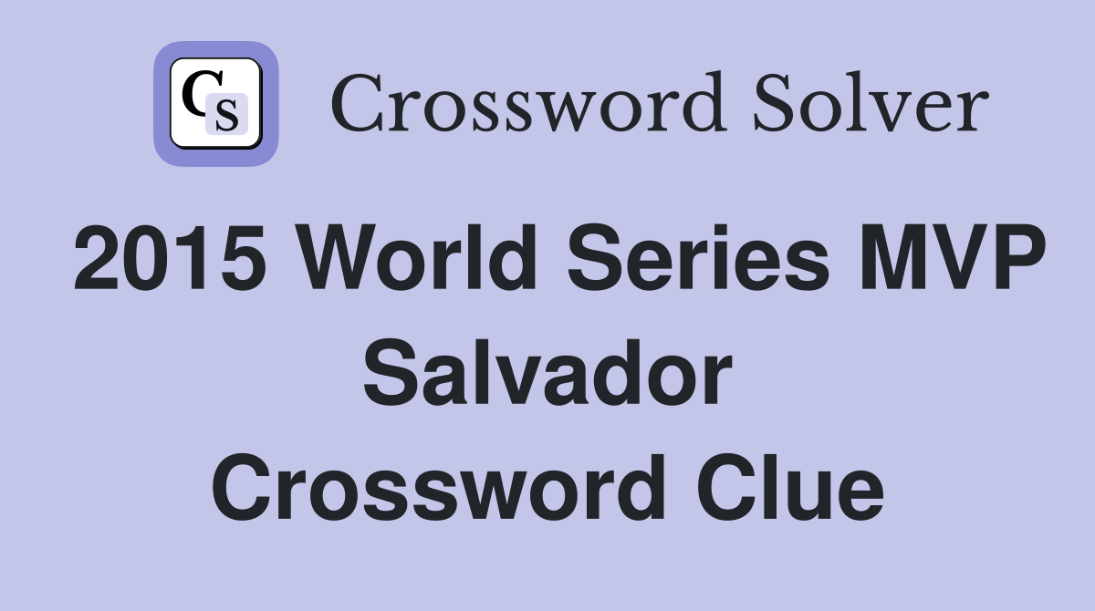 2015 World Series MVP Salvador Crossword Clue Answers Crossword Solver