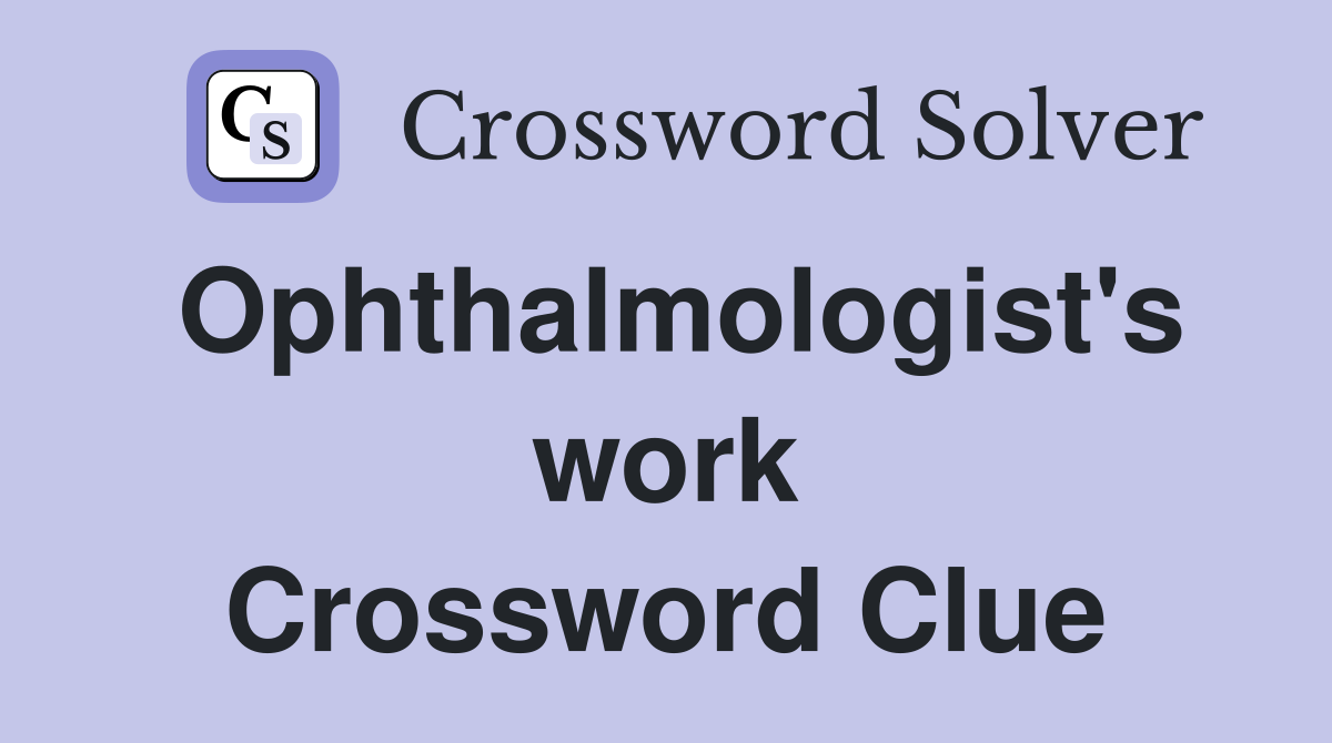 Ophthalmologist #39 s work Crossword Clue Answers Crossword Solver