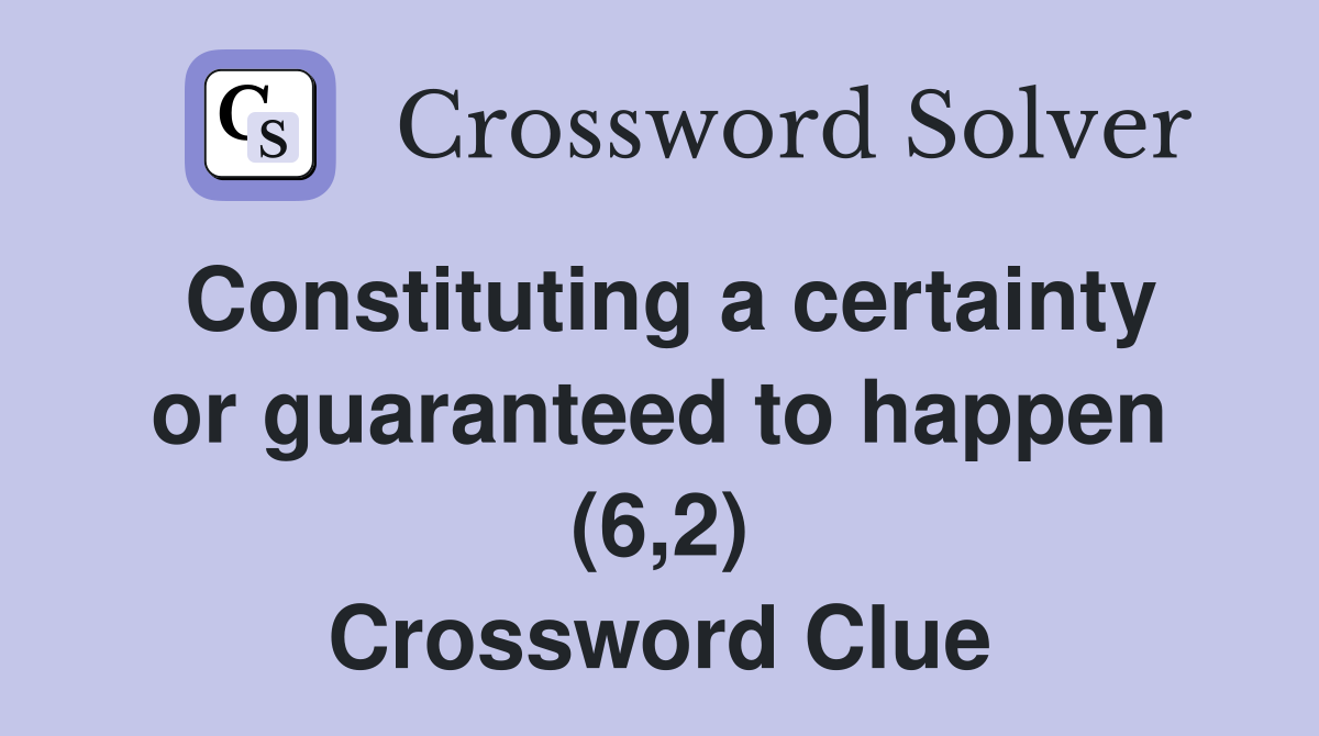 Constituting a certainty or guaranteed to happen (6 2) Crossword Clue