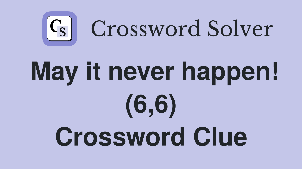 May it never happen (6 6) Crossword Clue Answers Crossword Solver